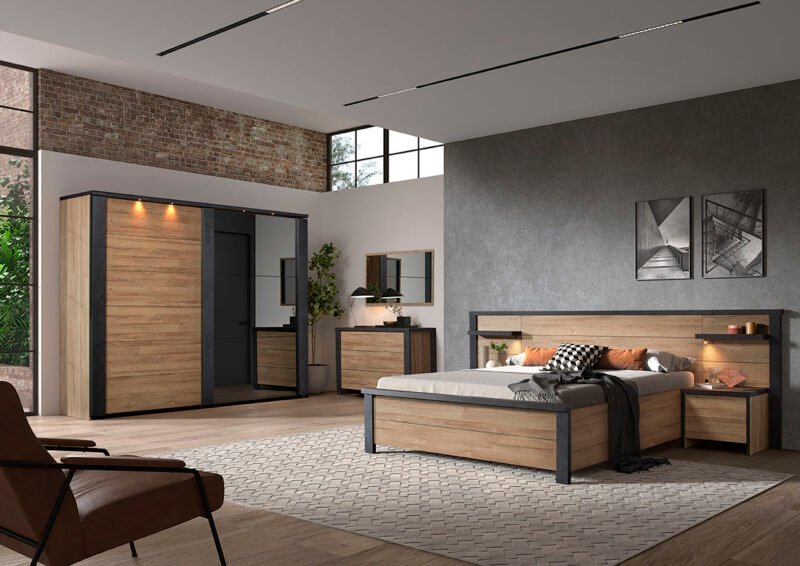 La Chambre « Phaedra » a été pensé pour répondre aux besoins quotidiens des foyers modernes. En un seul achat, vous bénéficiez de tous les meubles indispensables pour aménager une chambre adulte fonctionnelle et confortable. L’agencement est réfléchi pour offrir un maximum de rangement tout en conservant un bel équilibre visuel dans la pièce.